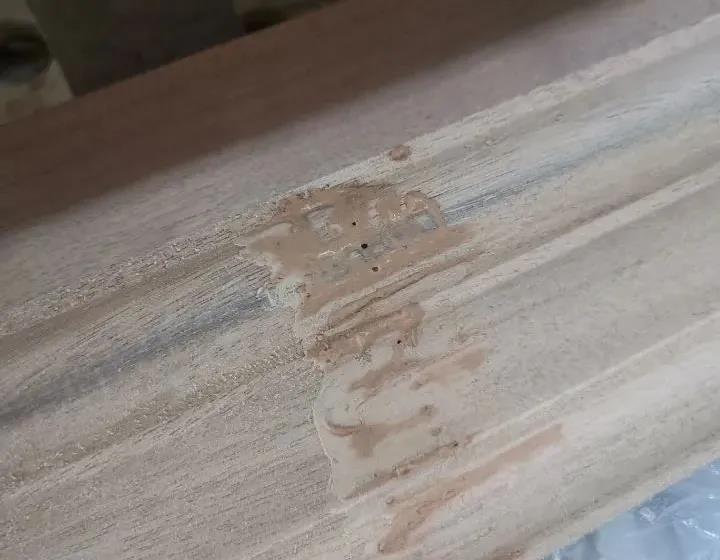 針對局部樹脂(油囊)的材料,可先用刀挖除油囊部位,再用同種材料(木紋方向應一致)進行填補;如果不允許挖除,可用有機溶劑清洗,松節(jié)油、漆油、甲苯、丙酮等清洗,去掉油脂后,預防二次滲出,需要先做封固,再按工序進行作業(yè)。
