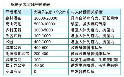 在自然界中當(dāng)負(fù)氧離子數(shù)在10000個/cm3以上時,人會感到神清氣爽、舒適愜意。所以負(fù)氧離子也被稱為“空氣維生素”,甚至有人稱它為“長壽素”。