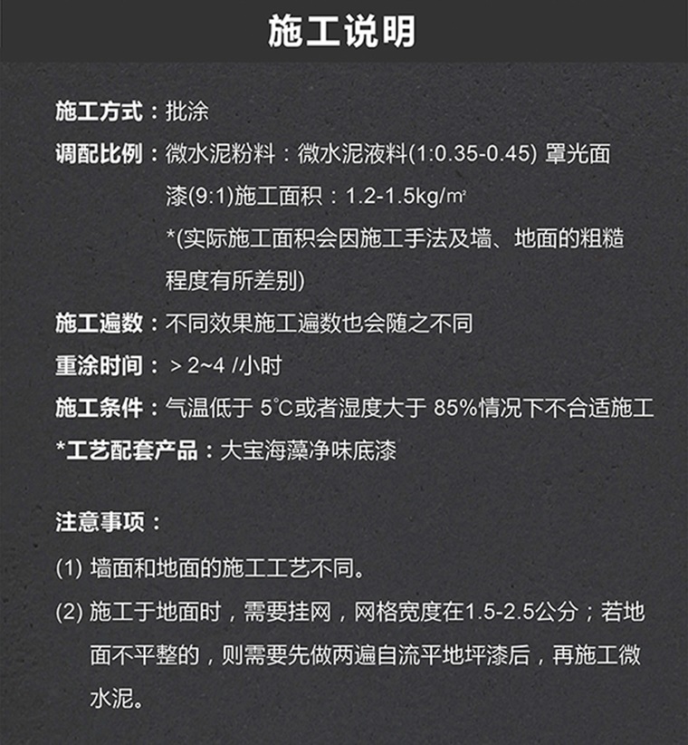 當家居設計遇上微水泥藝術漆,打造渾然一體的高級感,微水泥以其細膩如水泥的質感紋理,漫反射突顯質感,特別適合用來營造空間的高級氛圍,簡直是裝修中的buff,如果你厭倦了傳統涂料的單調和乏味,不妨試試大寶微水泥藝術涂料吧!