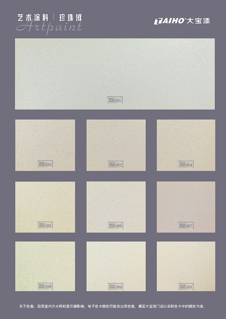 珍珠絨藝術(shù)涂料以優(yōu)質(zhì)珠光顏料為基礎(chǔ),結(jié)合環(huán)保樹脂乳液的黃金比例調(diào)制而成。其以水作為分散介質(zhì),施工過(guò)程中僅揮發(fā)水分,不含任何苯、甲醛等有害物質(zhì),無(wú)毒無(wú)害,讓家人住得更安心。