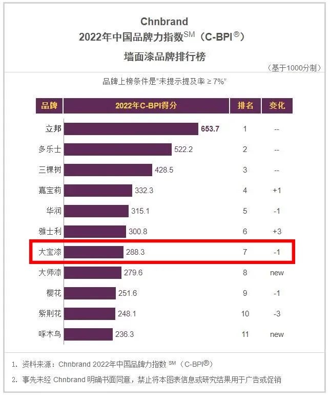權威發布|大寶漆再次上榜2022年中國品牌力指數排行