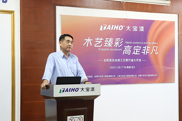 11月5日,大寶漆順德·龍江全新高定涂裝工藝展廳盛大啟幕?;顒右浴澳舅囌椴?高定非凡”為主題,大寶化工直銷事業部總經理張正賢、業務一部副總經理周志鴻、業務一部營銷總監葉小兵以及順德辦全體業務與工程服務人員等,共同見證了這一服務升級的新里程碑。