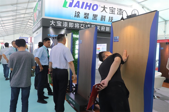 大寶漆作為國(guó)家高新技術(shù)企業(yè),緊扣“涂裝黑科技”的主題,在成都家具展重點(diǎn)展出了公司最近幾年研發(fā)突破的家具漆新工藝,包括:淺色科技木皮耐黃變高硬度系列、1度左右的PU全啞面漆系列、水性雙組份底面著色耐高溫系列、UV底面著色系列和格麗斯著色層次感強(qiáng)系列等,受到了參展的家具廠、涂料同行的關(guān)注。尤其是淺色科技木皮耐黃變高硬度系列和1度左右的PU面漆全啞涂裝系列,吸引了不少家具廠企業(yè)代表駐足觀看,了解產(chǎn)品信息,紛紛表達(dá)了合作意愿。