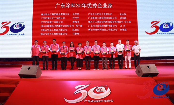 三十年來,廣東涂料緊跟國家產業政策、通過不斷的努力奮斗,各細分行業都得到很好的發展,在全國樹立起了廣東涂料品牌優勢,木器涂料更是占絕對領導地位。三十年來,廣東涂料行業出現了許多優秀企業,產生了一批行業企業家、優秀管理者、技術標桿、勞動模范。為中國經濟進步、涂料事業的發展,做出了大的貢獻。
