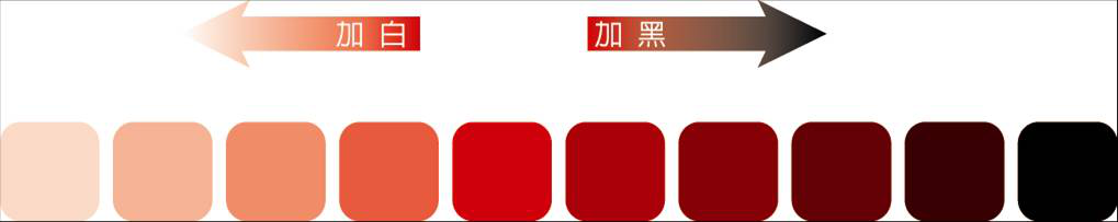 3. 影像處理中改變色調的方式??梢栽谕簧嗌?,加入白色來提高明度;加入黑色來降低明度的方式,產生一系列的色彩變化,如淺紅、淡 紅、亮紅、深紅、暗紅即是紅色不同的明度變化。