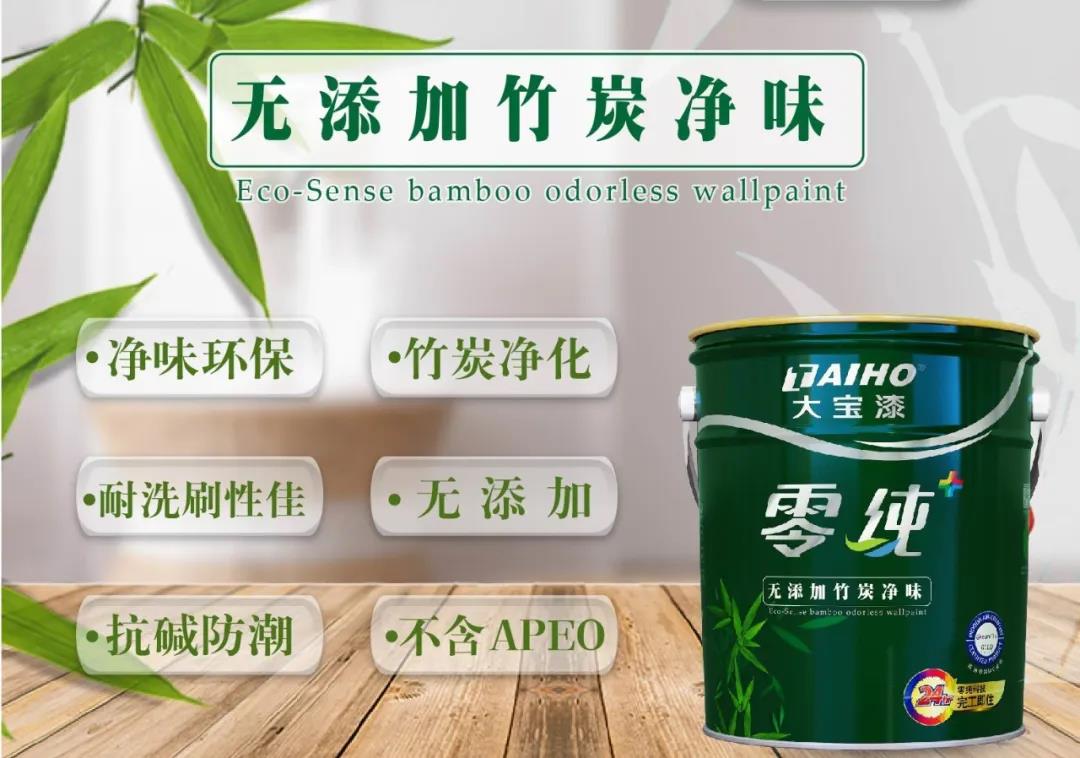 凈味無添加,竹炭吸附健康更加分。大寶零純+無添加竹炭凈味墻面漆,甄選優質原材料結合大寶最新科技研發而成,內含天然竹炭因子,能有效吸收空氣中游離甲醛、苯、TVOC等有害物質,達到清新空氣的作用。讓您及您的家人安心入住。