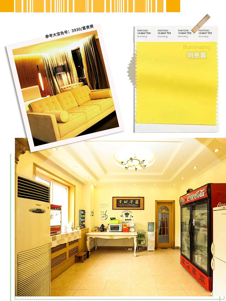 亮麗黃的明亮具有溫暖的意義,就像灑在身上的陽光來喚醒人們對未來的期待如果快樂有顏色,那一定會是黃色,在任何暗沉的顏色當中一旦加入黃色的點綴,整個空間和氛圍,就好似有了一股生命力。在歷經一年的艱難后,明亮的黃色喚起我們對未來的渴望和樂觀的心態。