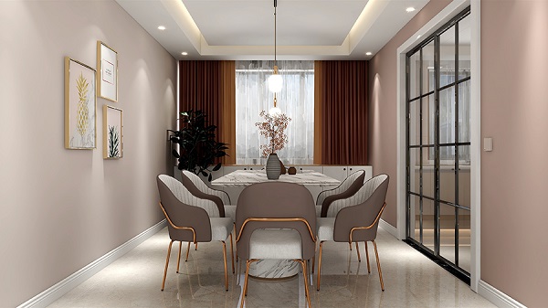 選擇同為暖色調的橘色或紅色,與藕粉色相互呼應,在自然光照射下,這組合顯得清新明亮,帶有一絲俏皮與浪漫;而當夕陽余暉灑入房間墻面的色彩又流露出沉穩與寧靜的氛圍。
