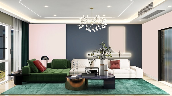 深藍或寶藍與藕粉色對比搭配,展現出視覺沖擊力。藕粉色的溫暖柔和能有效中和藍色的冷調,瞬間讓家居配色與眾不同,凸顯獨特的個性化風格,為空間注入現代感與藝術氛圍,讓人眼前一亮。