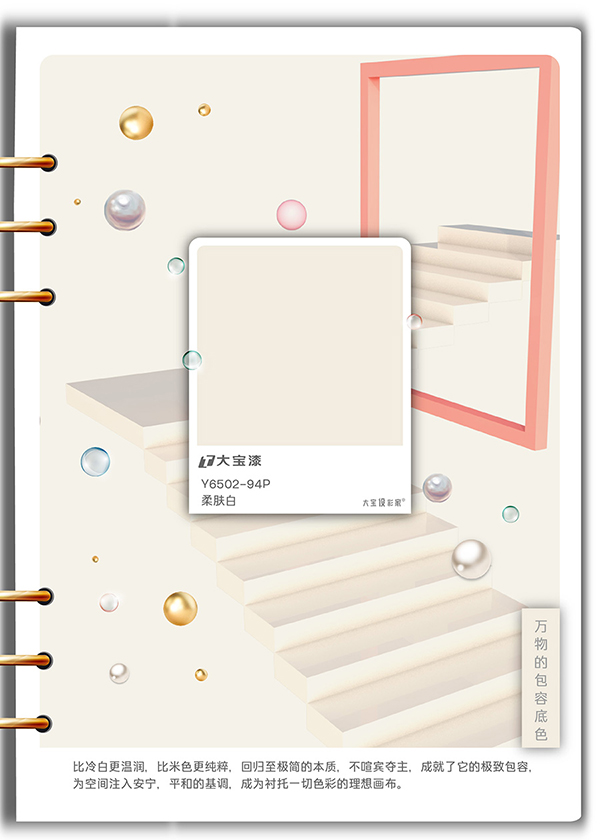 搭配建議:與“柔膚白”或“冬園即景”搭配,可營造出溫暖而現代的感覺。5.萬物的包容底色